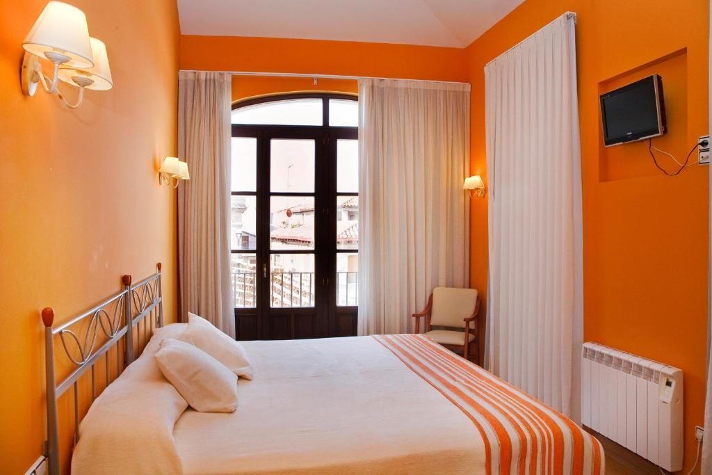 En la plaza del pueblo. Habitaciones y baños grandes y muy limpio. Zona común con una cocina completa con mesas y sillas ideal para calentar comida de niños o desayunar. Personal muy amable, atención rápida. Todo muy bien. Hotel sencillo y pequeño con todo lo necesario.